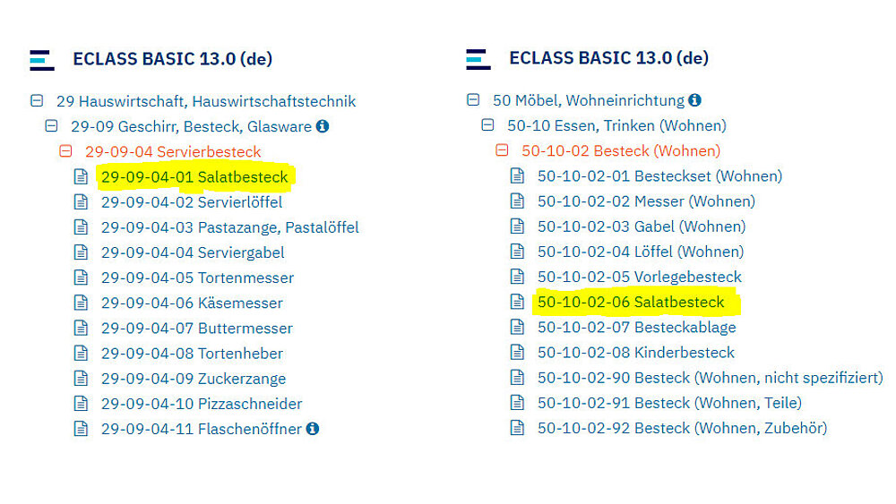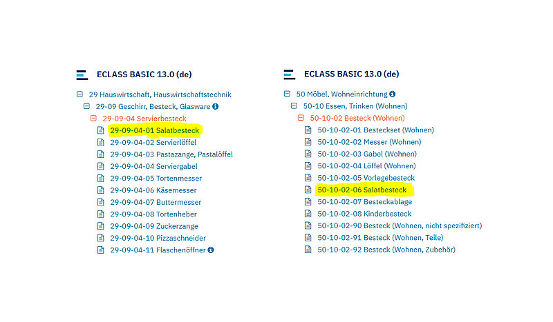 Dass Unternehmen, die ECLASS verwenden, neben anderen Vorteilen des Standards auch Redundanzen in Produktstammdaten vermeiden, ist längst bekannt. Aber wie steht es mit redundanten Strukturelementen innerhalb des Standards? Das „Salatbesteck“ finden wir z. B. sowohl in Sachgebiet 29 „Hauswirtschaft“ in Klasse 29090401 als auch in Sachgebiet 50 „Möbel, Wohneinrichtung“ in Klasse 50100206.