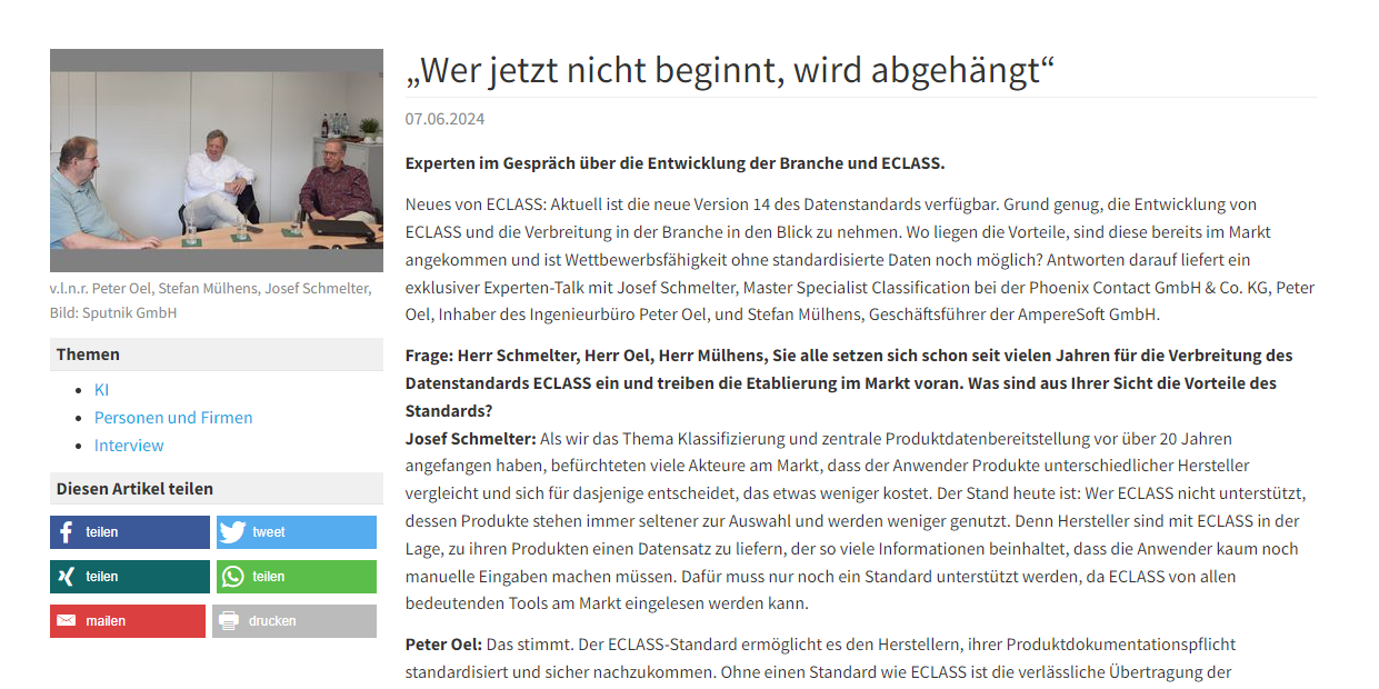 Auf der Plattform Build-Ing.de stellen sich die drei ECLASS-Experten Peter Oel, Stefan Mülhens und Josef Schmelter im Interview den Fragen der Redaktion.