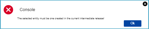 - in case that Release of the selected Application Class is FINAL, system indicates that no release of the selected entity allows modifications, example: