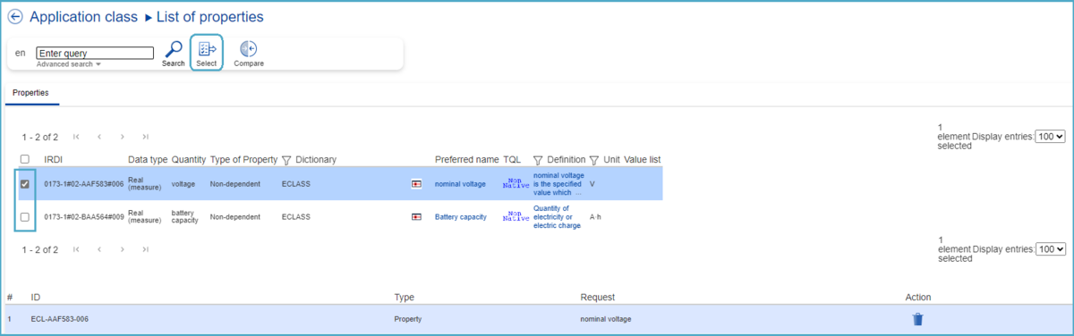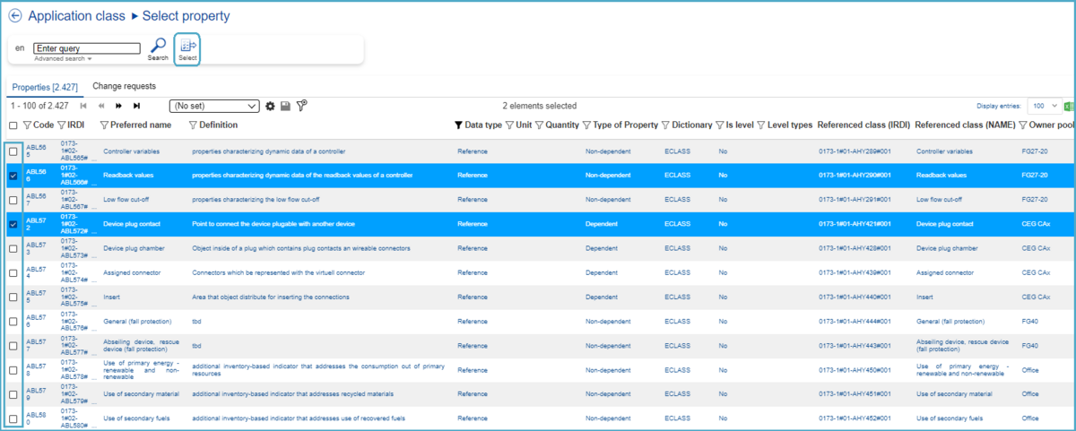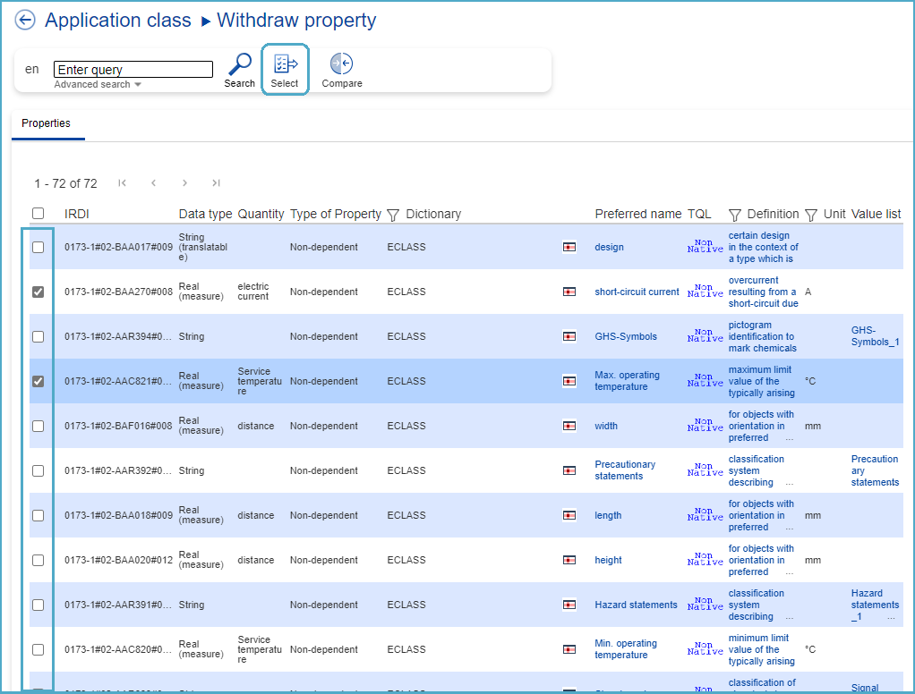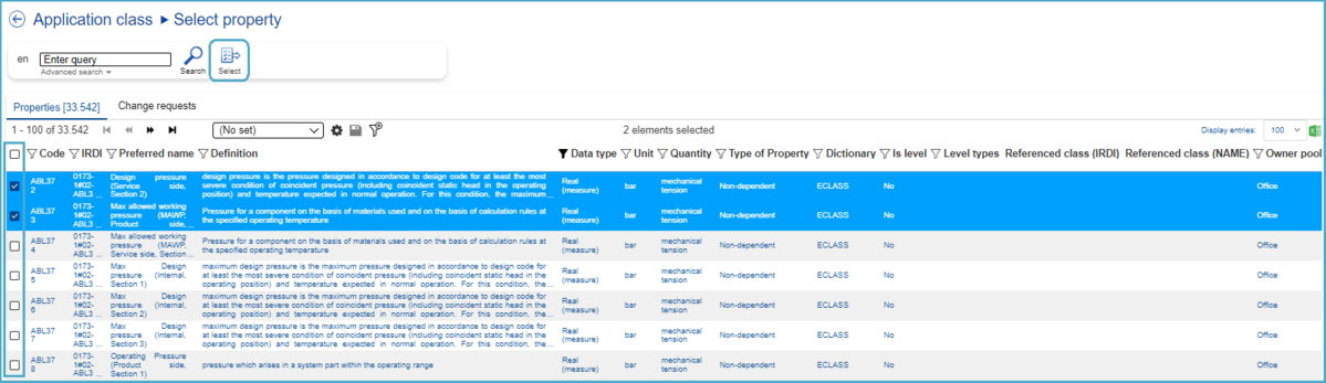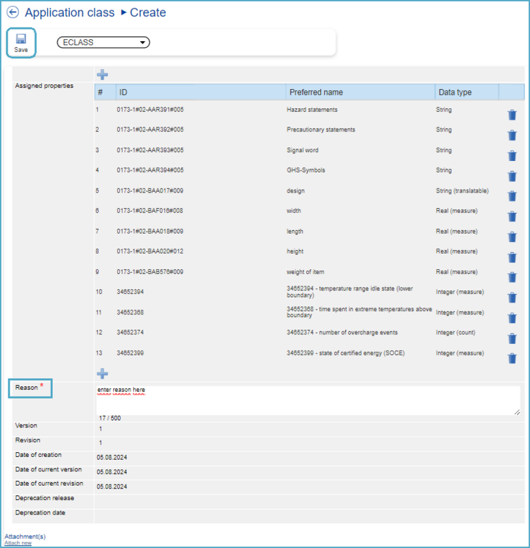 Note: If the user wants the assigned Property to also be present in the Basic representation of ECLASS, the user must tick the check box in the "Basic relevant" column!