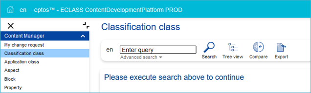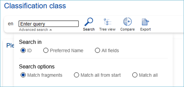 In the field Enter query it is possible to type in the ID or the preferred name of the classification class.