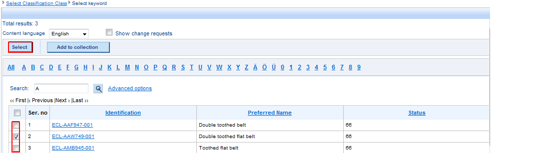 2. Click on the desired CC containing KW(s) in the Select Classification dialog and press the “Select” button.