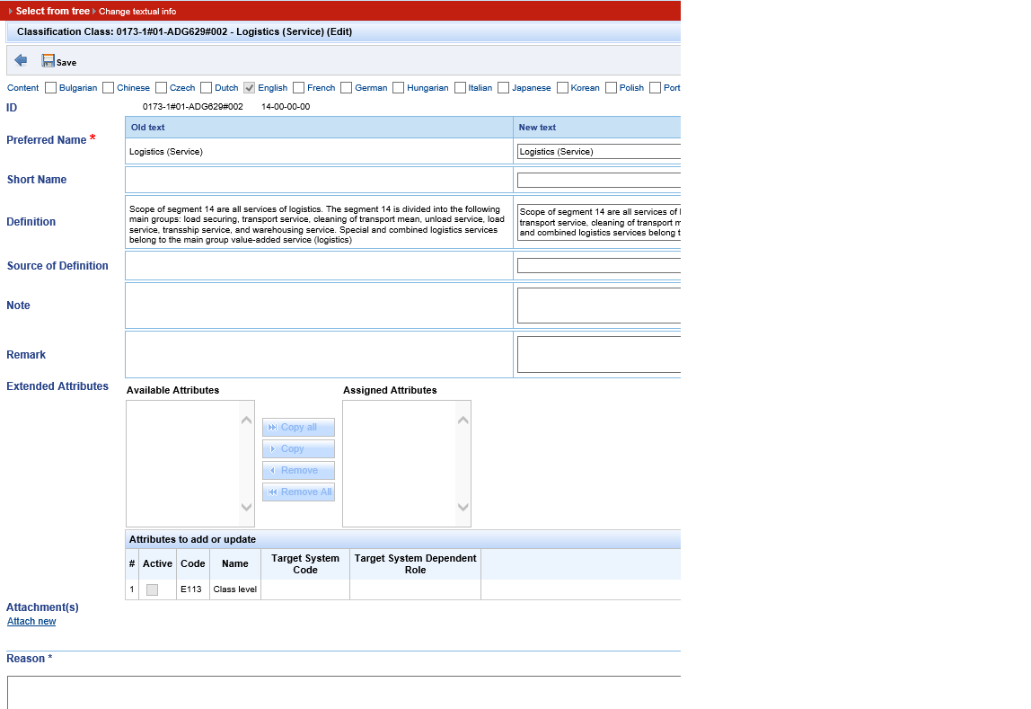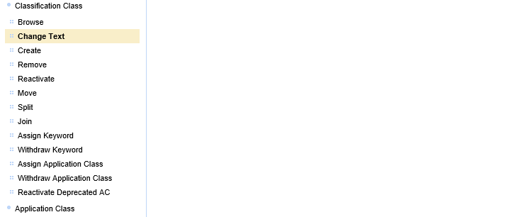 1. Select menu entry Change Textual Information under User/Change Request/Classification Class.