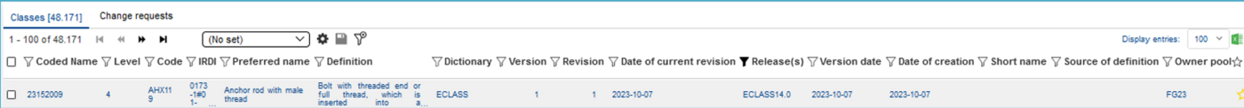 Level | Level of the class in the ECLASS hierarchy (from 1 to 4). For more information, see: Classification Class - ECLASS Technischer Support. |