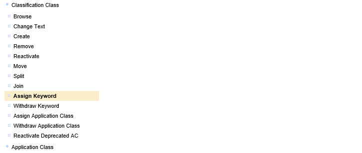 1. Select menu entry Assign Keyword under User/Change Request/Classification Class.