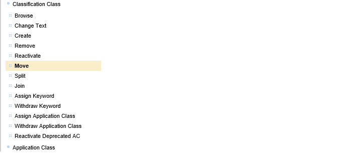 1. Select menu entry Move under User/Change Request/Classification Class.