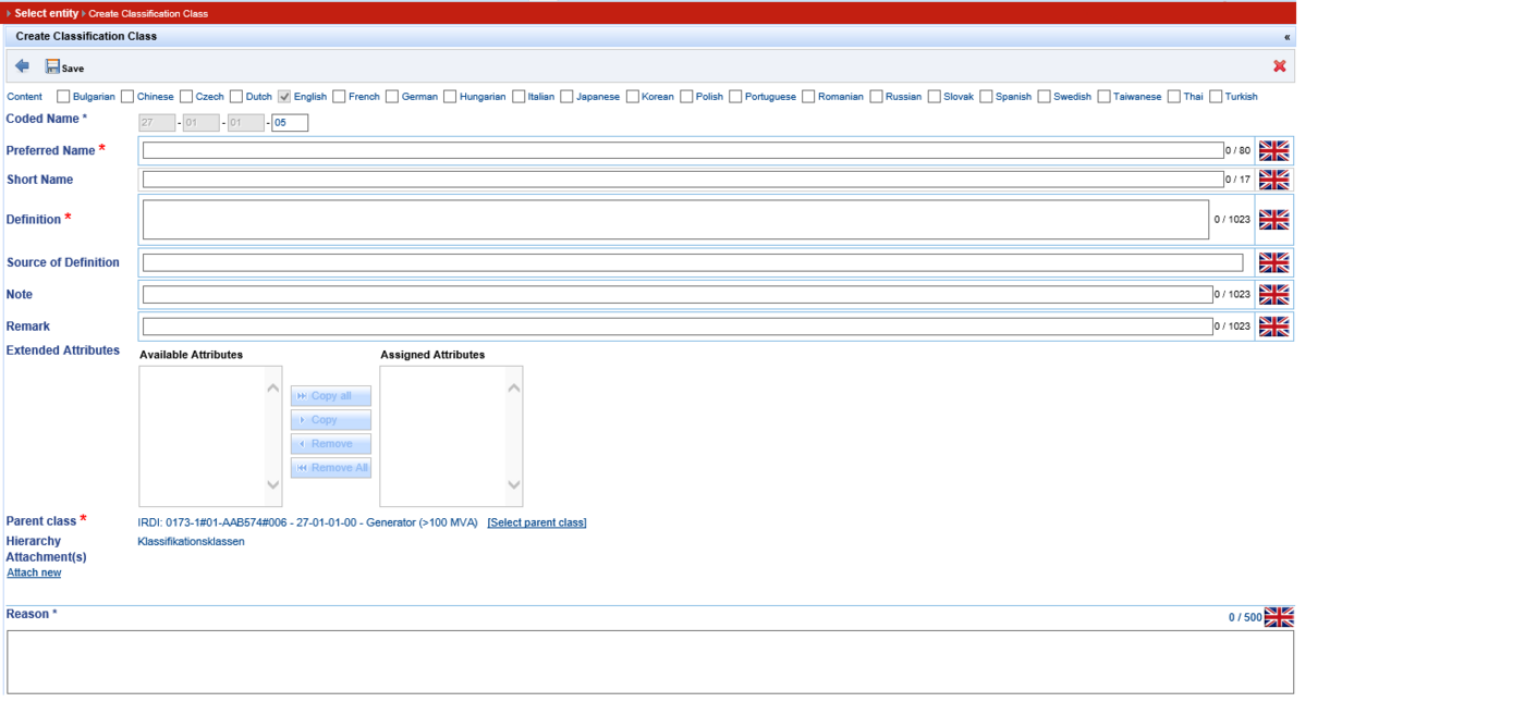 A new classification class is created and positioned in the ECLASS class hierarchy. The levels 1-3 represent procurement markets, the 4th level represents classes of similar products or services. This has to be considered when creating a new class.