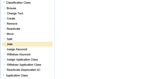 1. Select menu entry Join Classification Class under User/Change Request/Classification Class.
