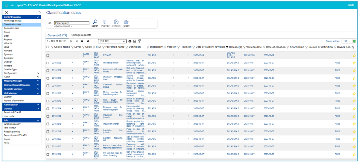 For ECLASS as a classification system, the most fundamental structural element is the classification class. With the help of classification classes products are divided into certain categories of similar products, the product groups.