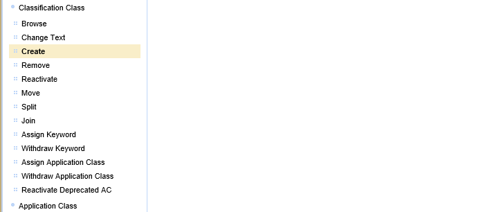 1. Select menu entry Create Classification Class under User/Change Request/Classification Class: