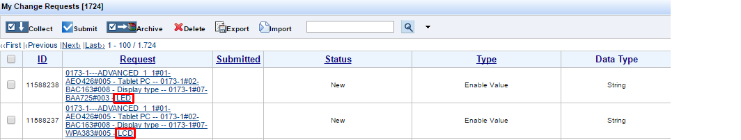 3. Enter Reason for Change Request and press SAVE --> System will create CR of type Enable Value for each of the selected Values: