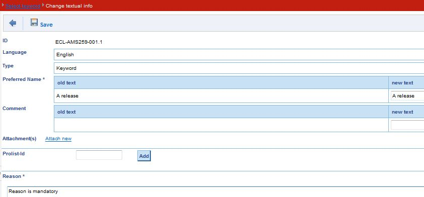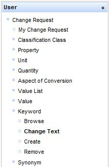 - Select menu entry Change Textual Information under User/Change Request/Keyword.