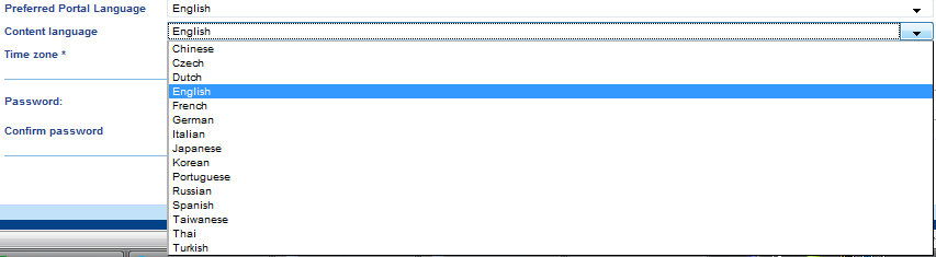 Content and Portal language can de set as the user desired by selection from the drop-down menu: