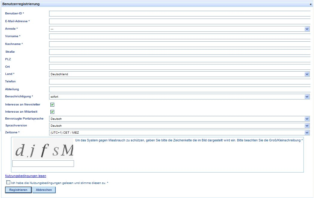 All fields marked with an asterisk are mandatory, i.e. registration is not possible without filling in these fields.