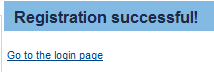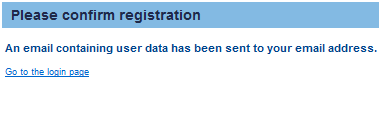 The user receives now an e-mail containing all registration information and a link which must be followed in order to confirm the registration and to activate the user. Once the user clicks the respective link in the e-mail, he is automatically redirected to the following page: