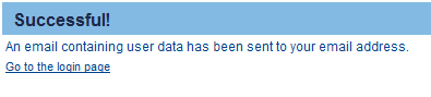 After filling in the form, the user must click [Send password] and an e-mail is sent automatically containing the new password, which can be used to login again. The user is notified with the following message: