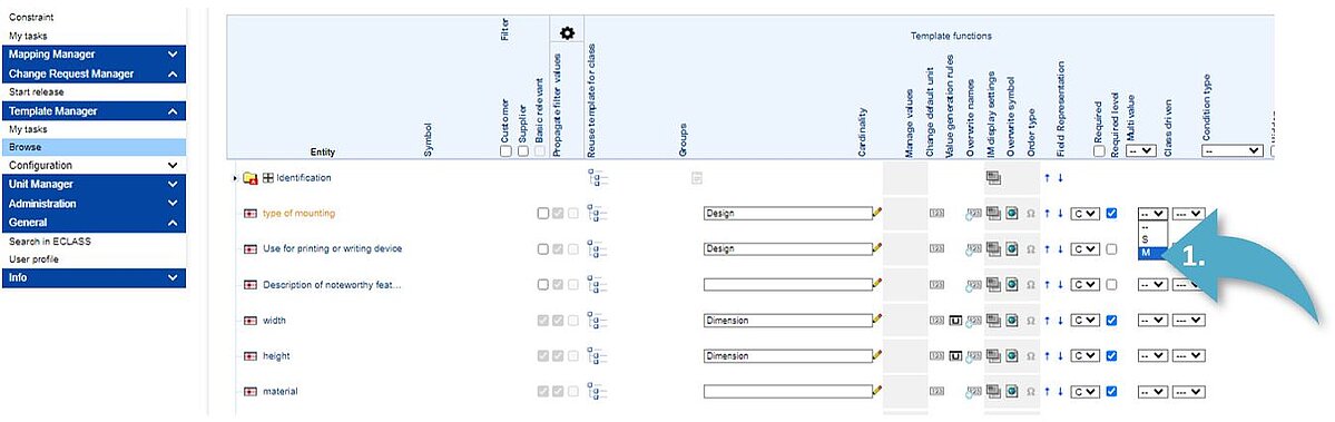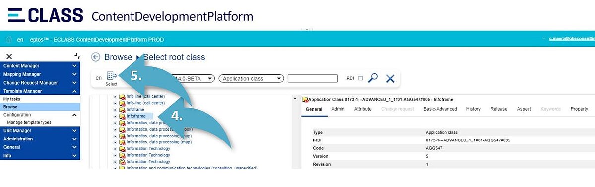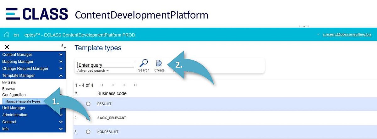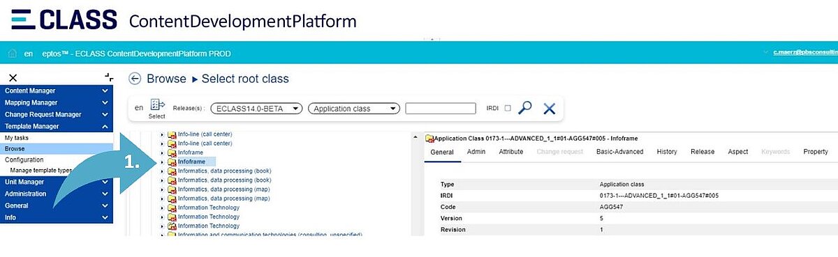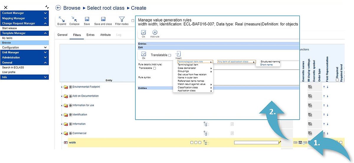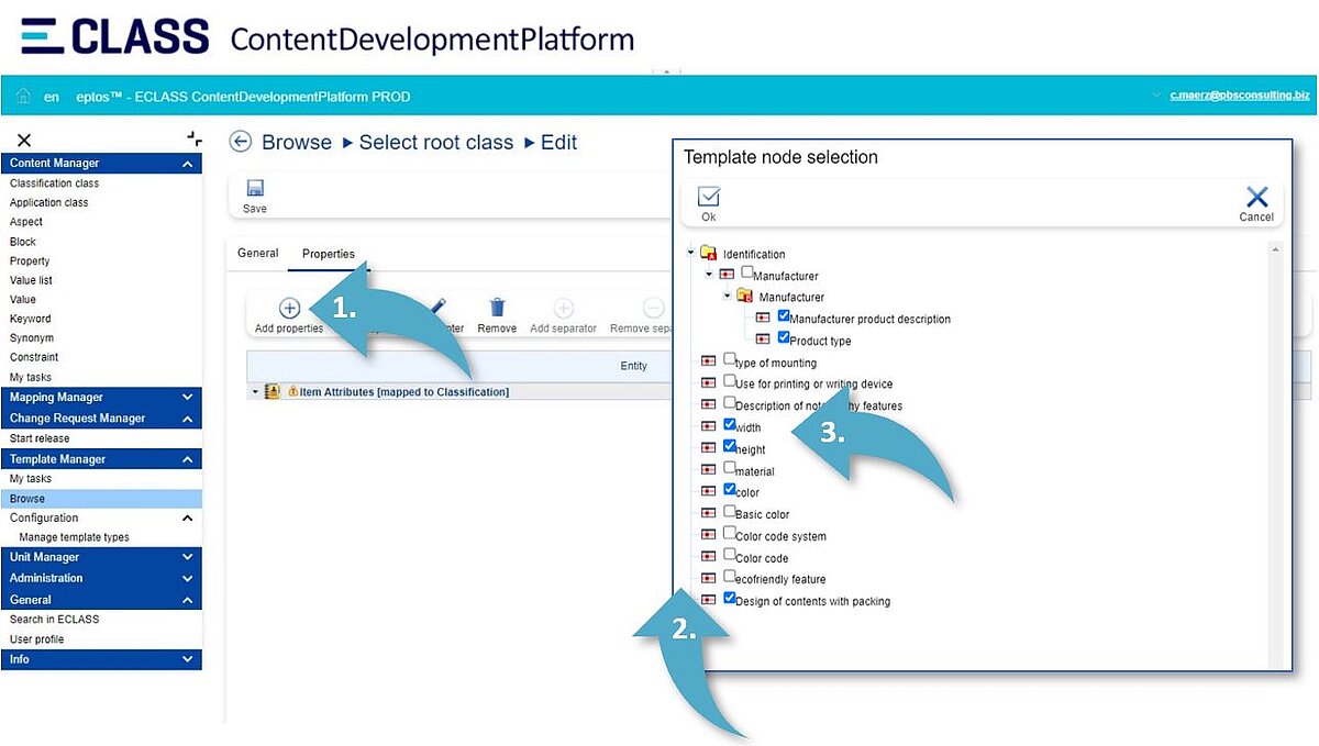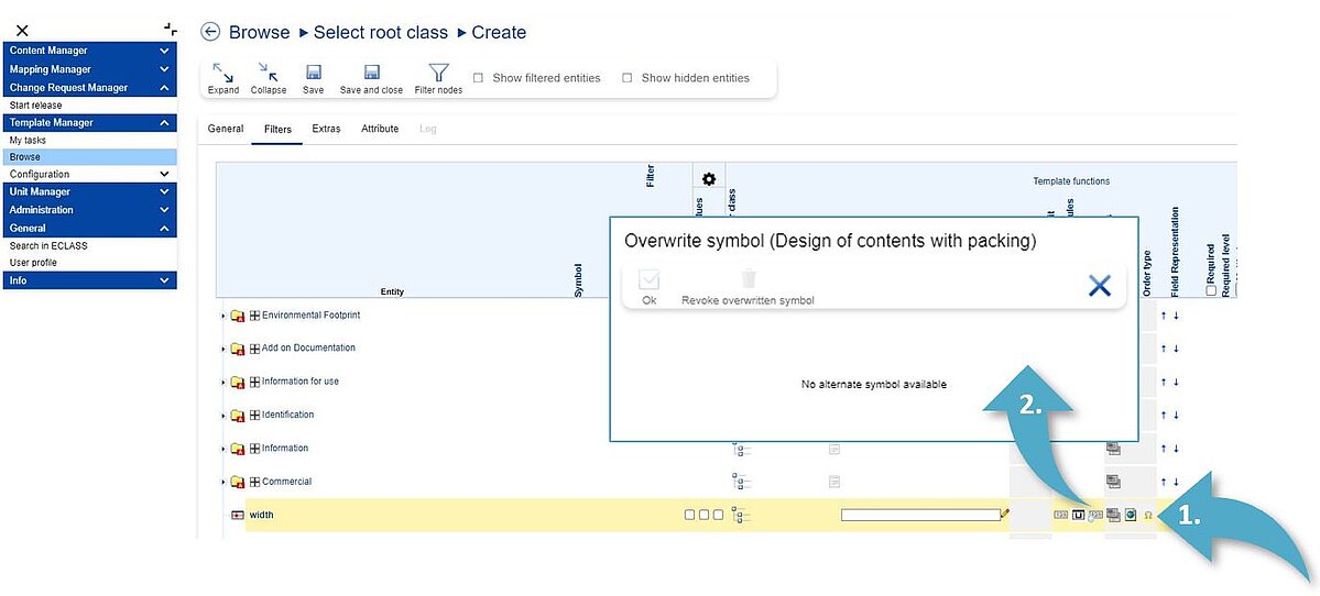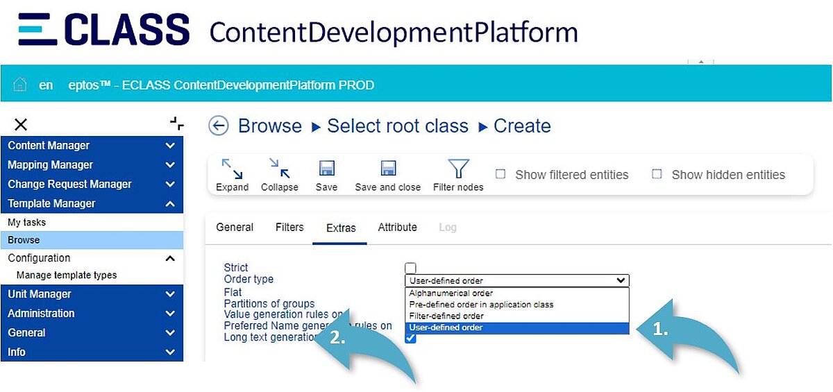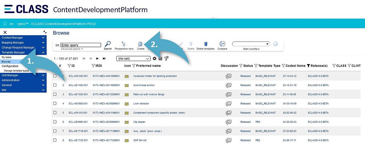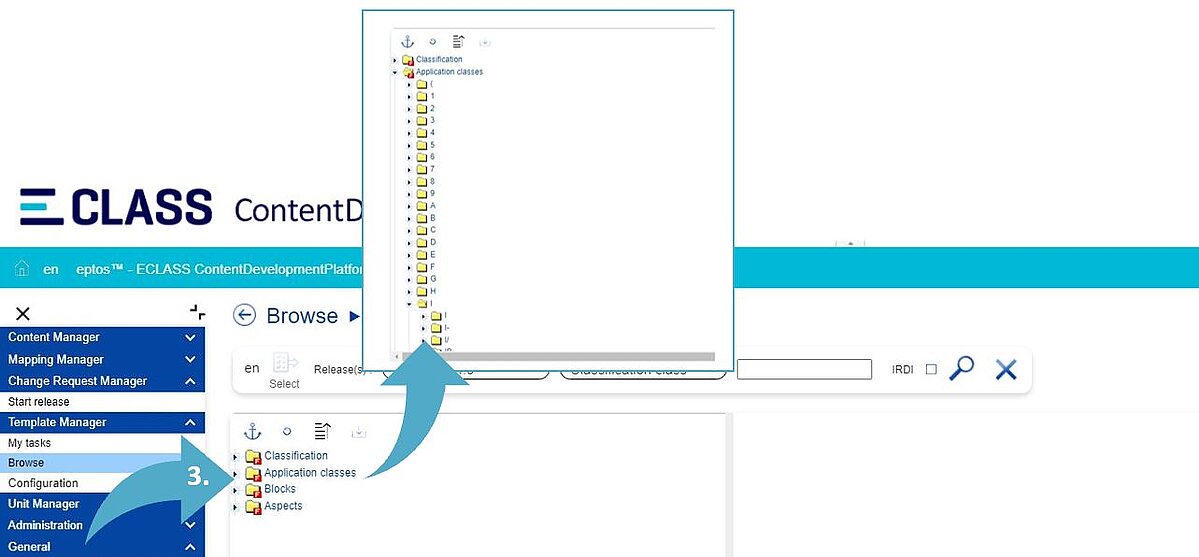 The Template Manager does not belong to the standard rights of the CDP and is therefore not displayed in the menu. If you are interested, please inform the ECLASS Head Office so that the necessary rights can be assigned to you.