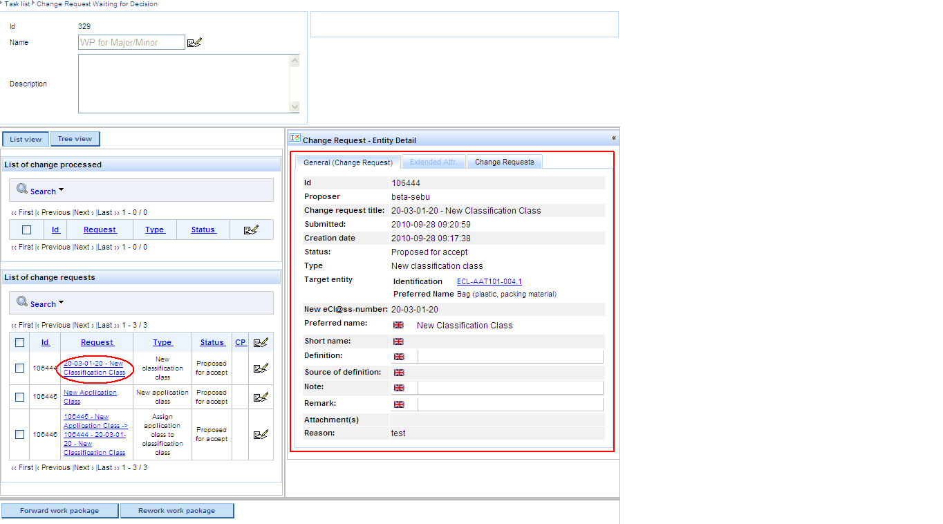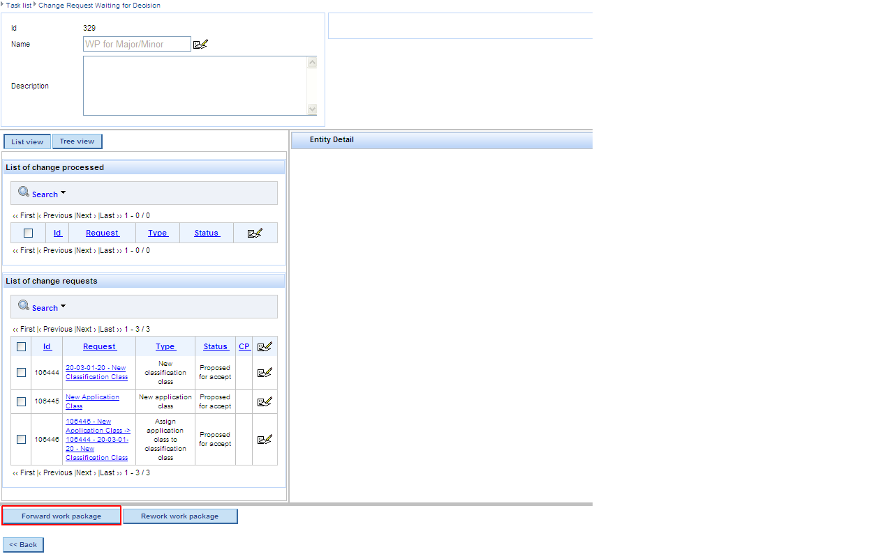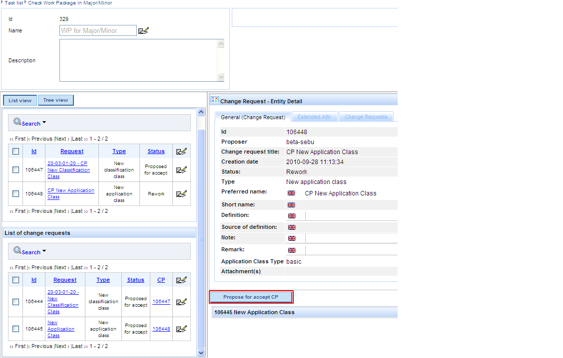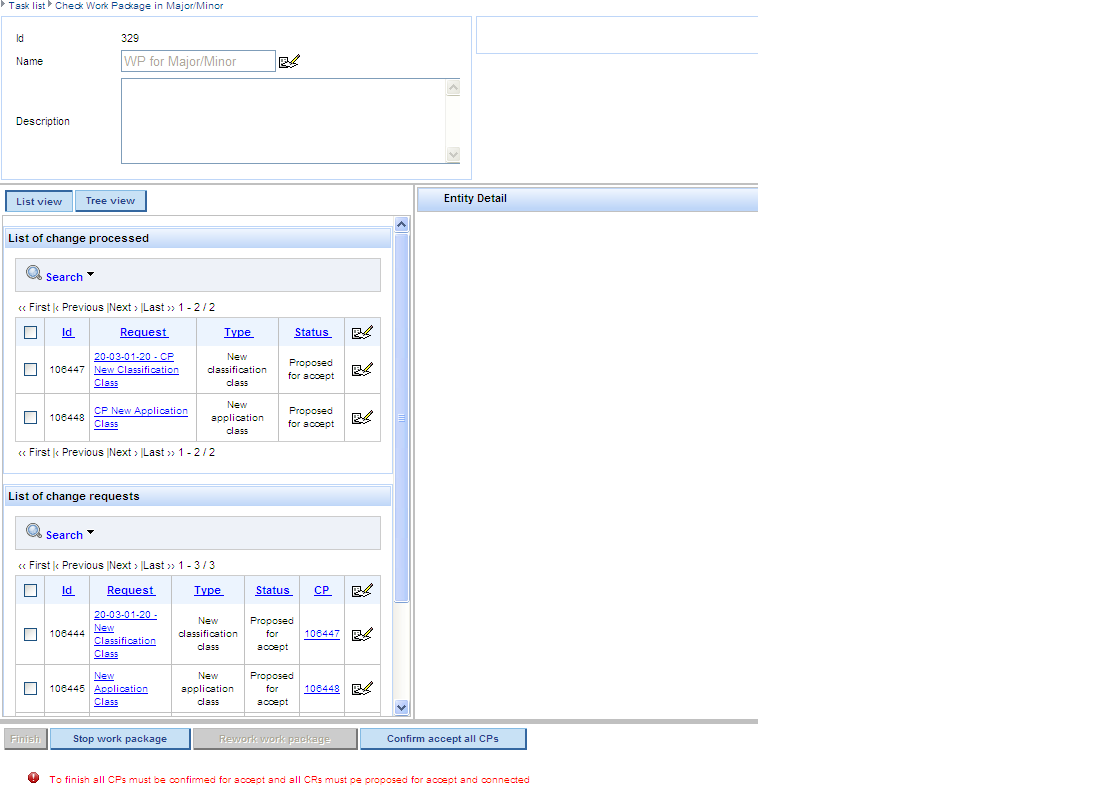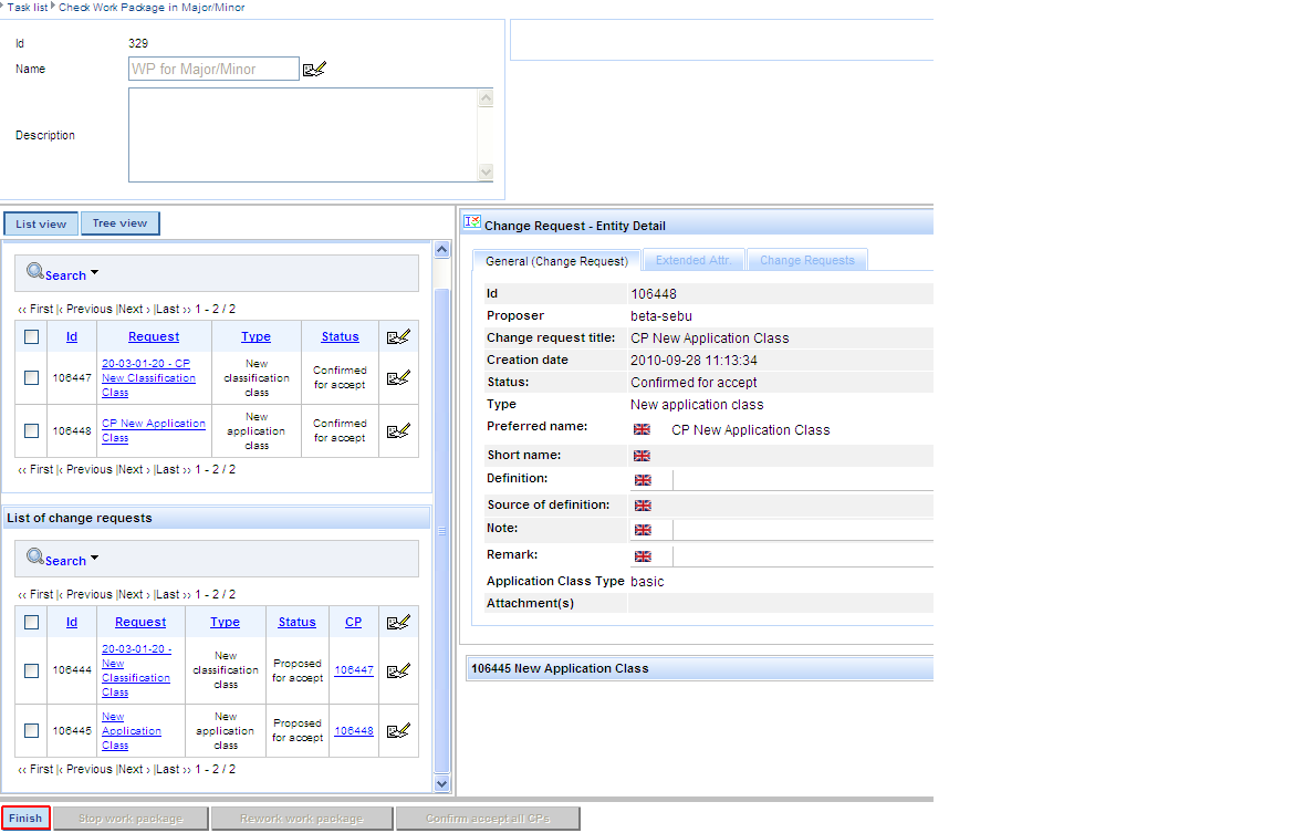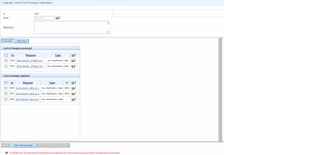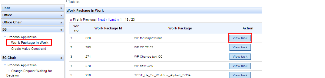 [EG – Process Application – Work Package in Work] EG clicks button “View task” in order to display the details of the WP and the corresponding CRs.