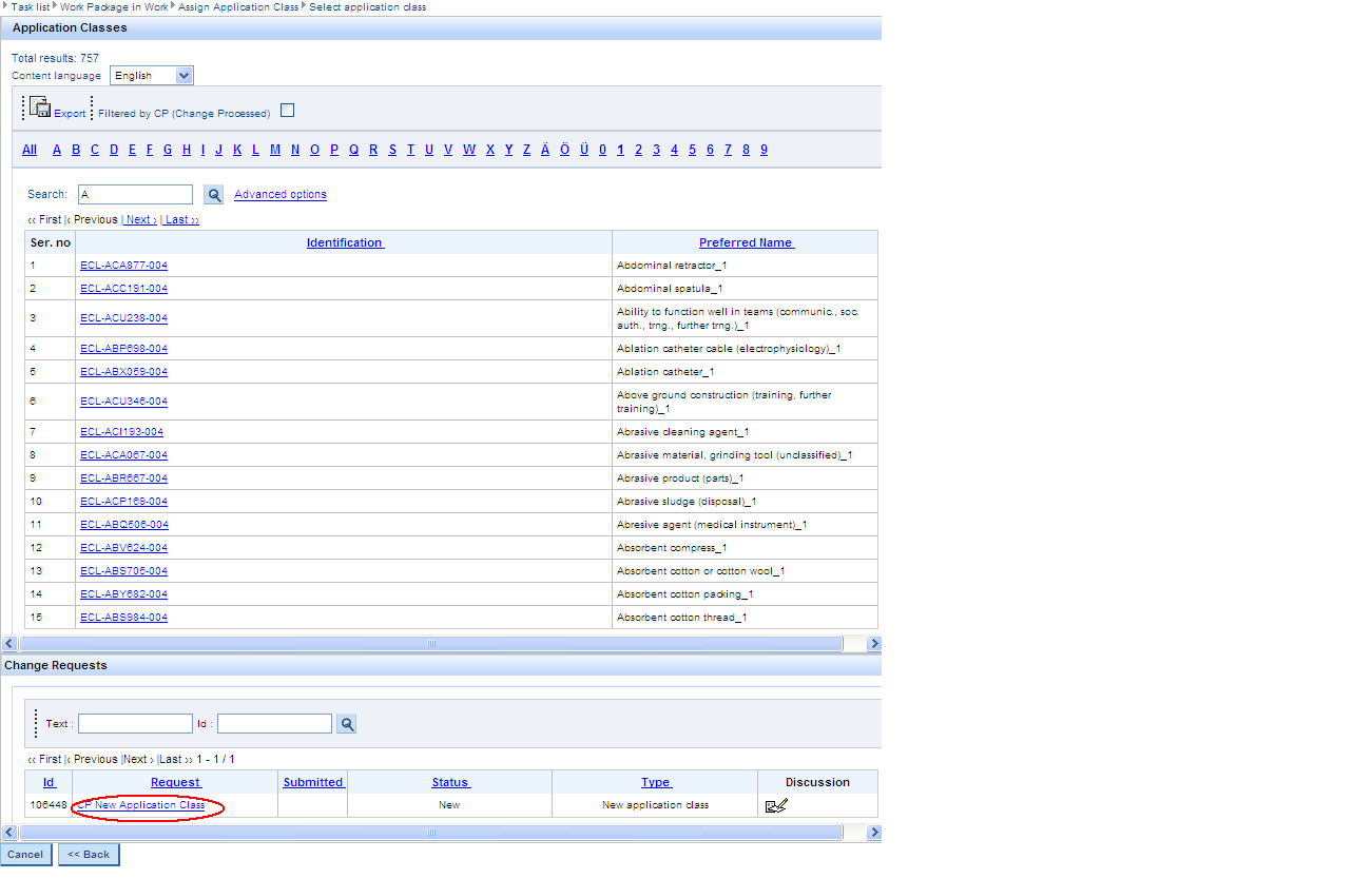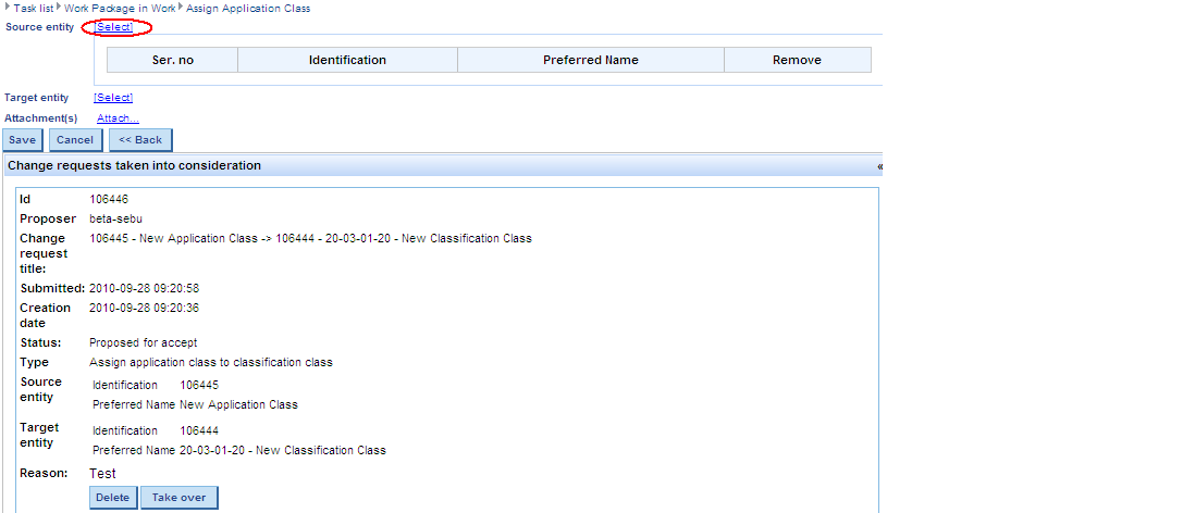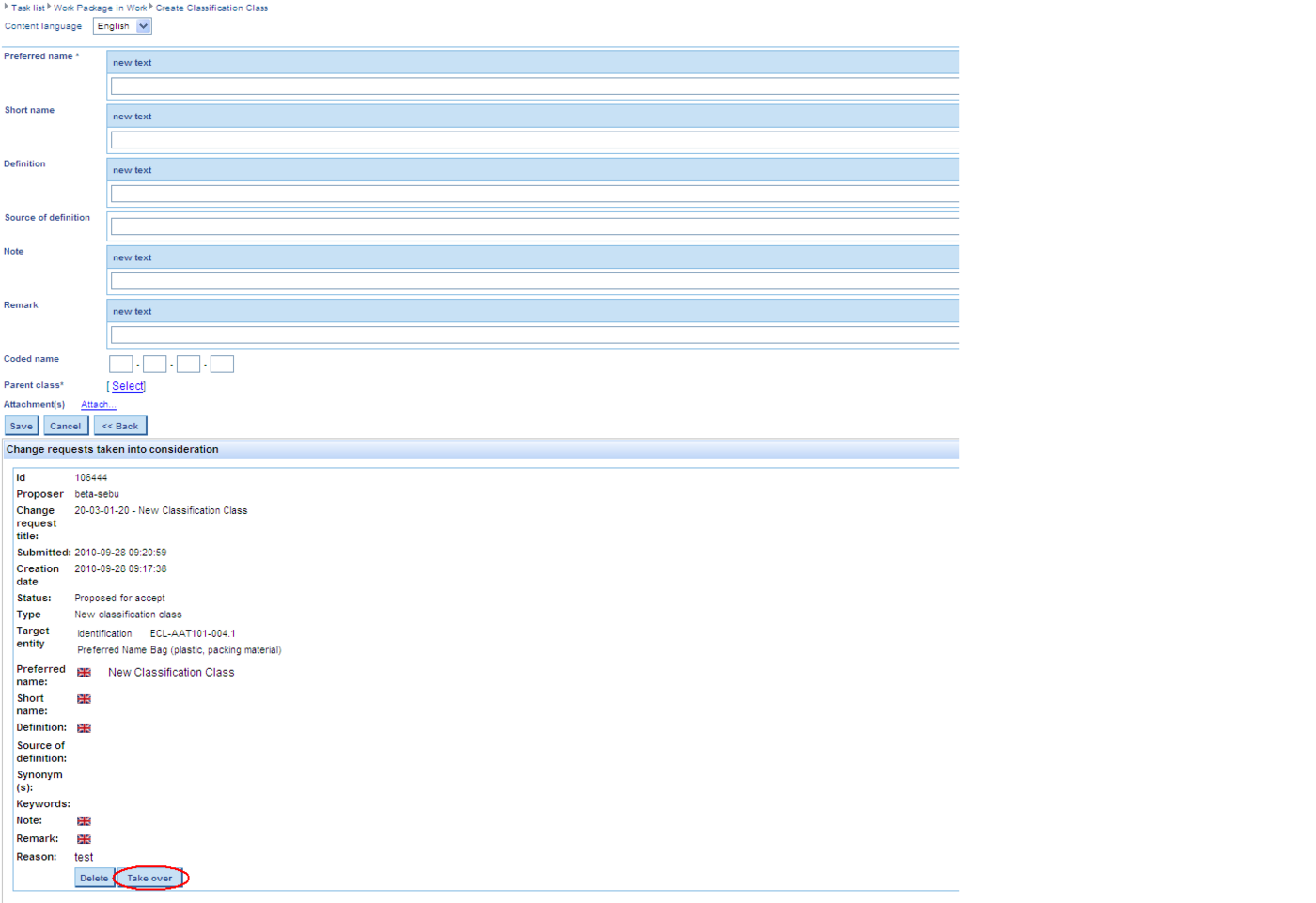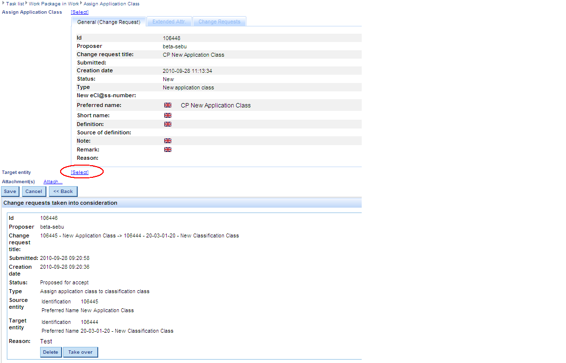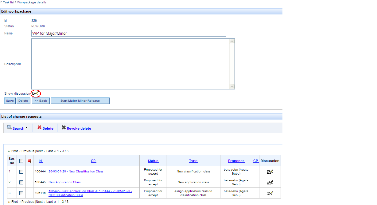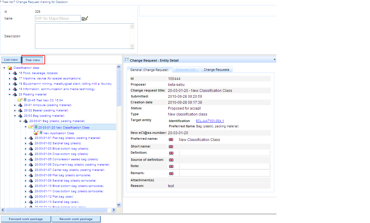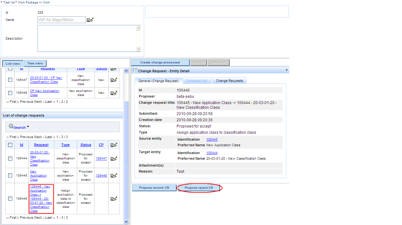 [EG – Process Application – Work Package in Work] EG clicks button “View task” in order to display the details of the WP and the corresponding CRs.
