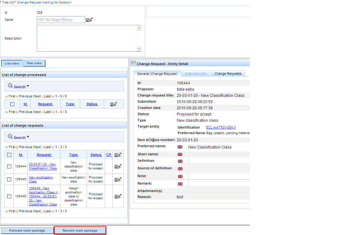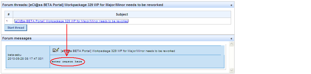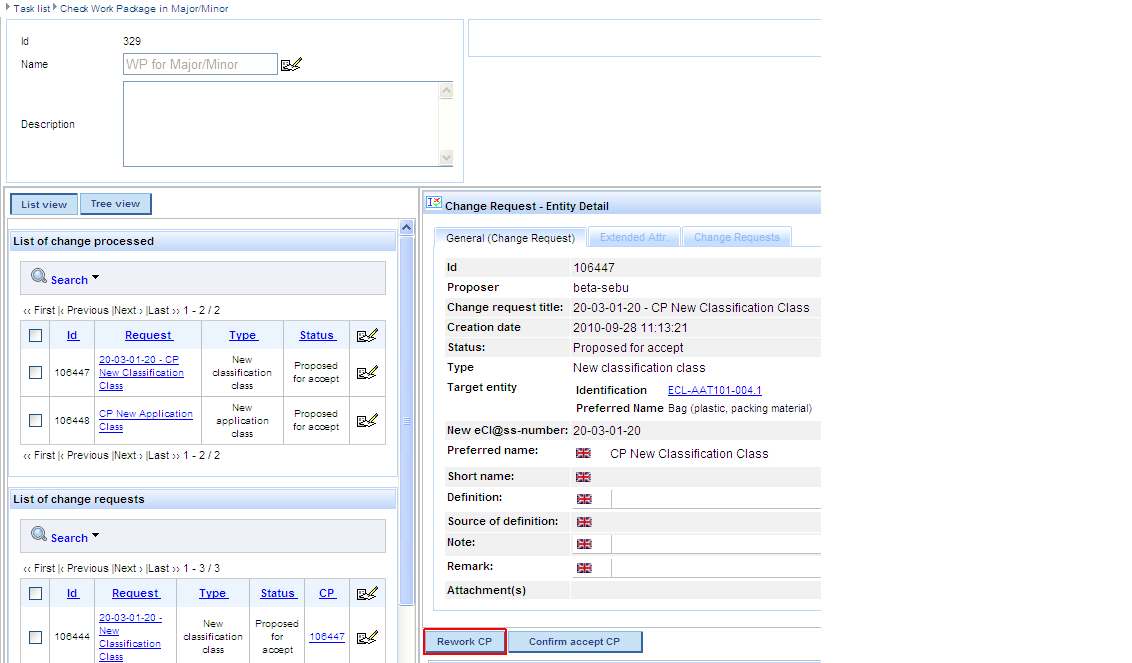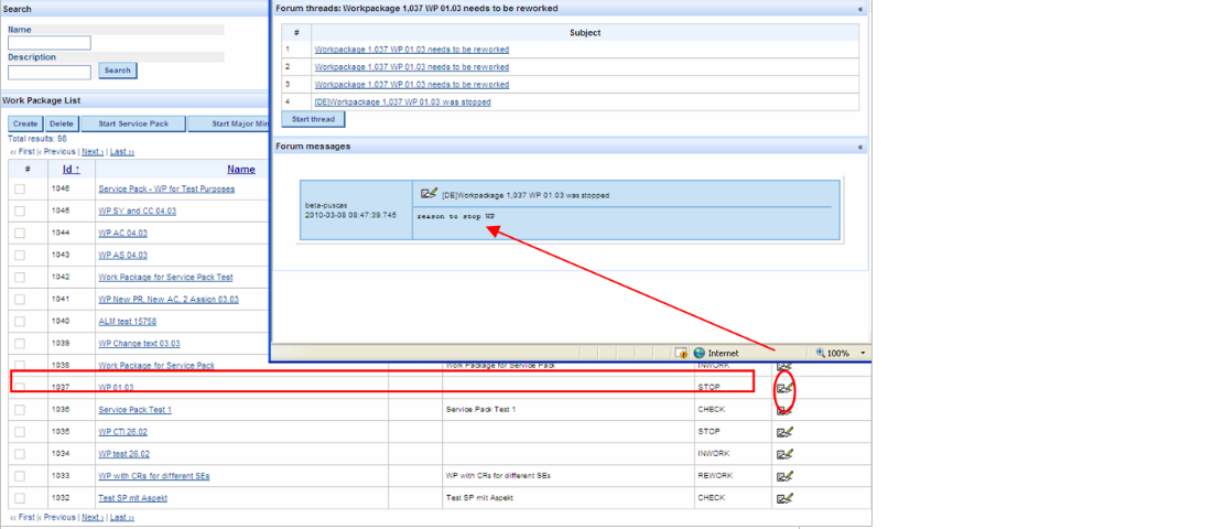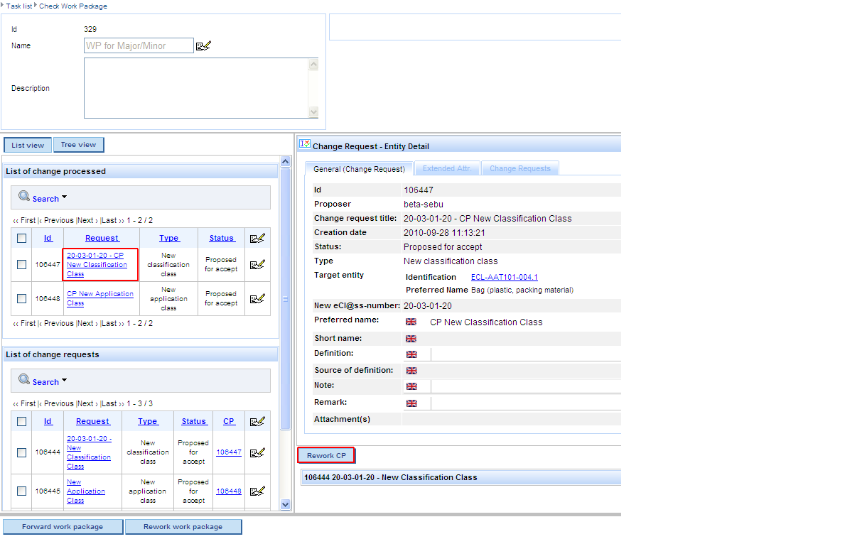 - The reason for proposing CPs for rework may be viewed by EG within the CP Forum and the reason for sending back the WP within the WP Forum [EG – Process Application – Work Package in Work]