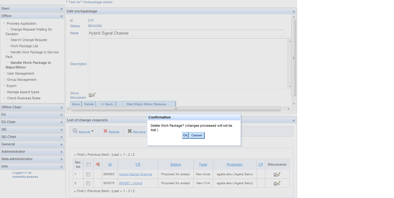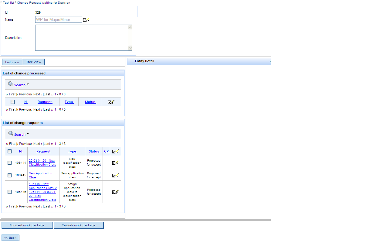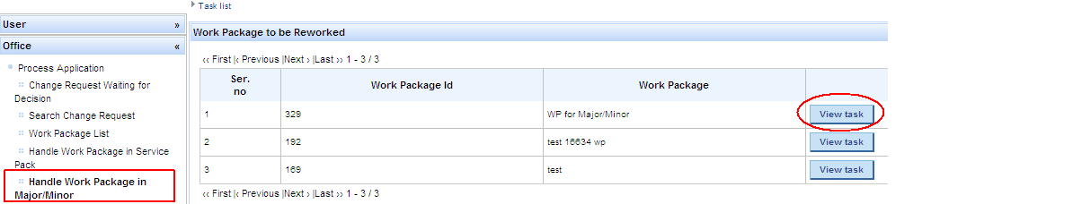 [Office – Process Application – Handle Work Package in Major/Minor] Office clicks button “View task” in order to display the details of the WP to be reworked and the corresponding CRs.