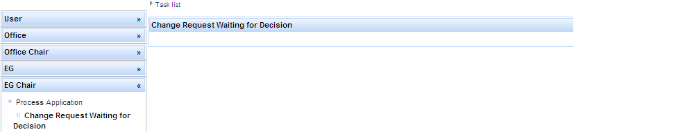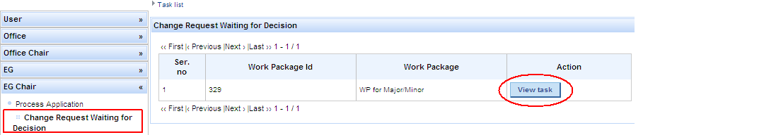 [EG Chair – Process Application – Change Request Waiting for Decision] EG Chair clicks button “View task” in order to display the details of the WP and the corresponding CRs