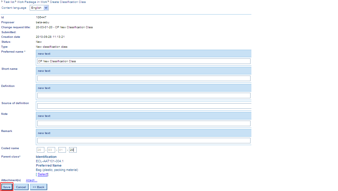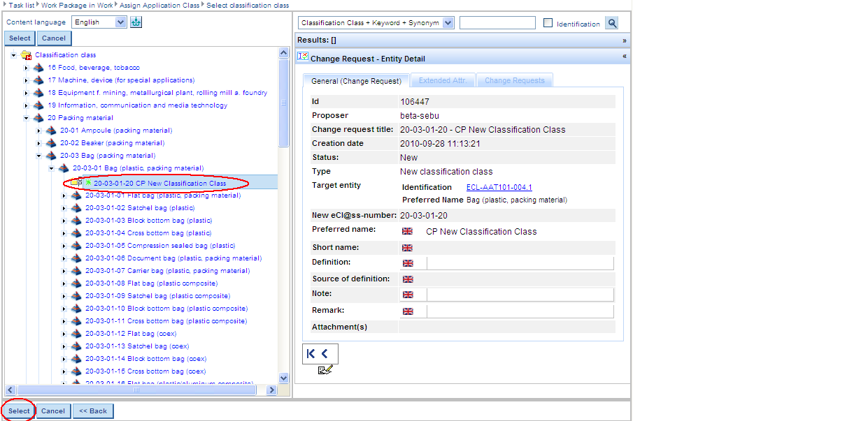 Step 5: Choose the CP for NEW SE (in this case New Classification Class) in tree and press the Select-button