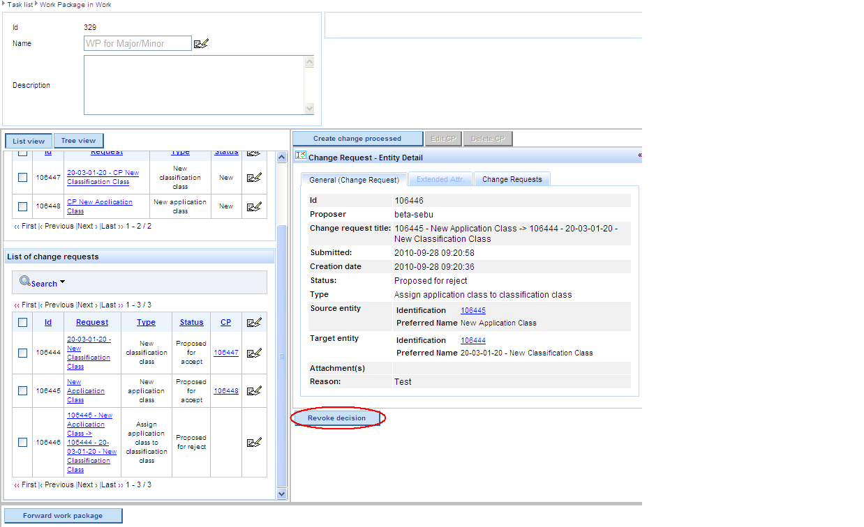 NOTE: After the CR has been proposed for rework, the [Revoke decision] button is available for the respective CR.