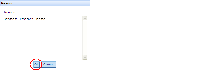 Step 3: Give the reason for rejecting the CR and press OK-button.