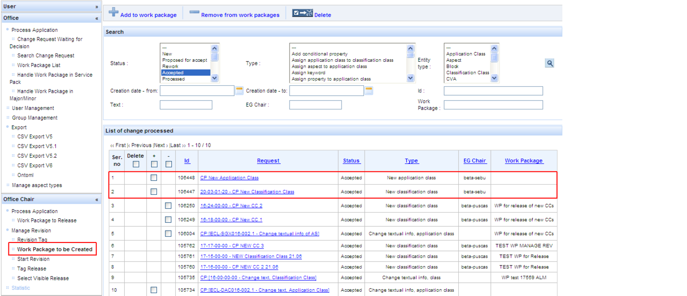 The WP can be viewed under [Office – Work Package List] and it is in status “RELEASE”.