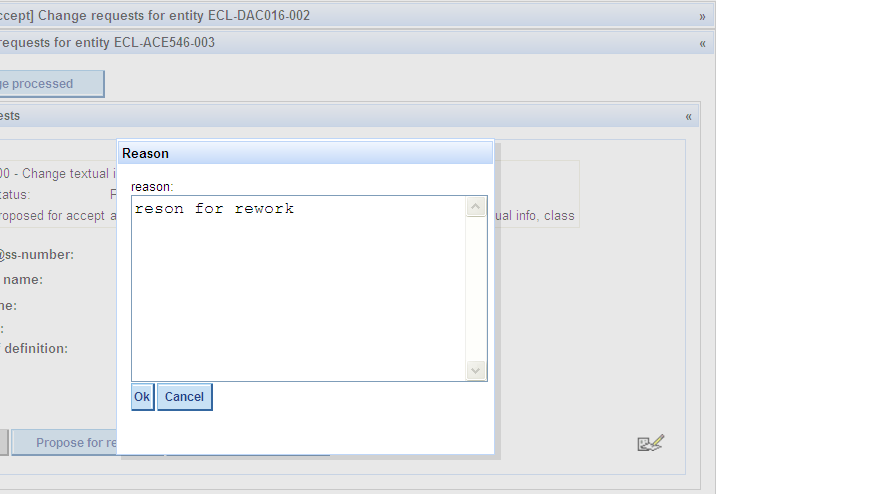 Enter the reason why you want to propose the CR for rework in the field „Reason“ and press OK.