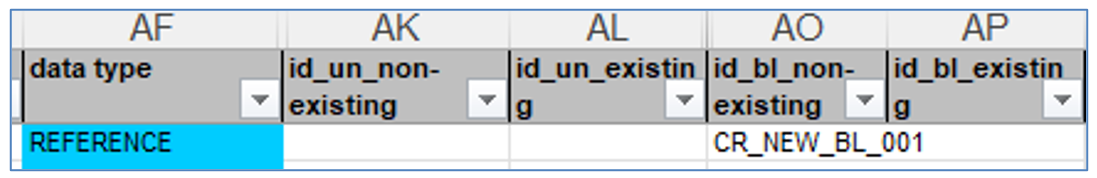 b. In the column AF select data type "reference" and in column AO or AP select the block that is to