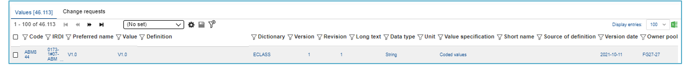 Version | Displays number of changes of the Value (part of the IRDI) |