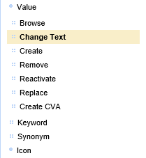 Withdraw | Allows withdrawal of dictionary elements (Synonym) from a selected Value. |