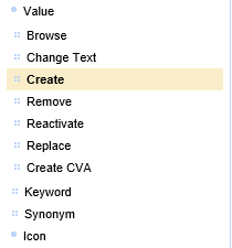 Figure 6: Menu entry used to call function „Create Value“ - Browse and search through existing values to check whether an appropriate value already exists, and in case no value is found - press button “Create Value”