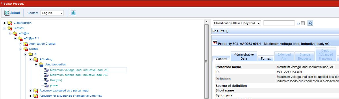 - Browse through the hierarchy of the classification tree to find values used in the BASIC version, click on the VA and click on the select button: