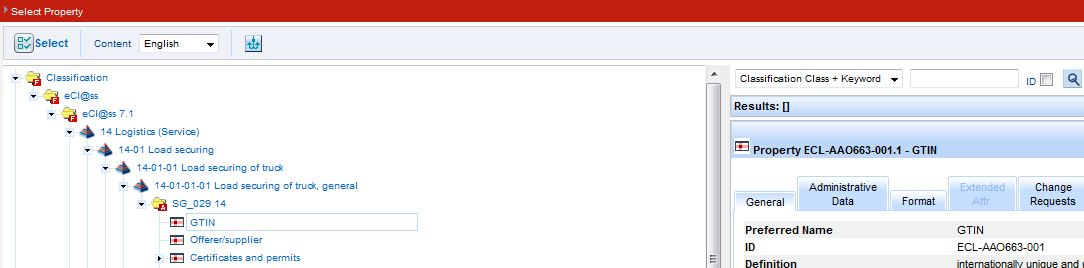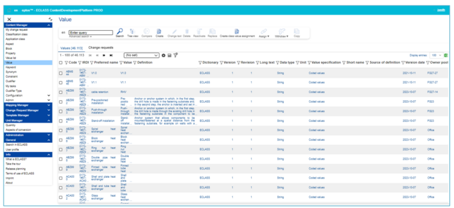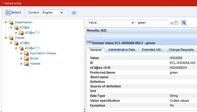The user can select between the tabs Classes [number of existent Values] and Change requests [number of Change requests]. Note: Number of Change requests is only displayed after clicking on the tab.