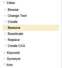 Remove | Allows removal of selected Value (or hard delete) |