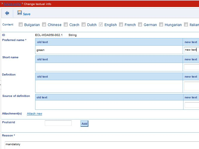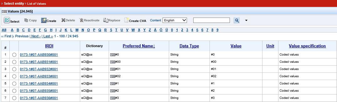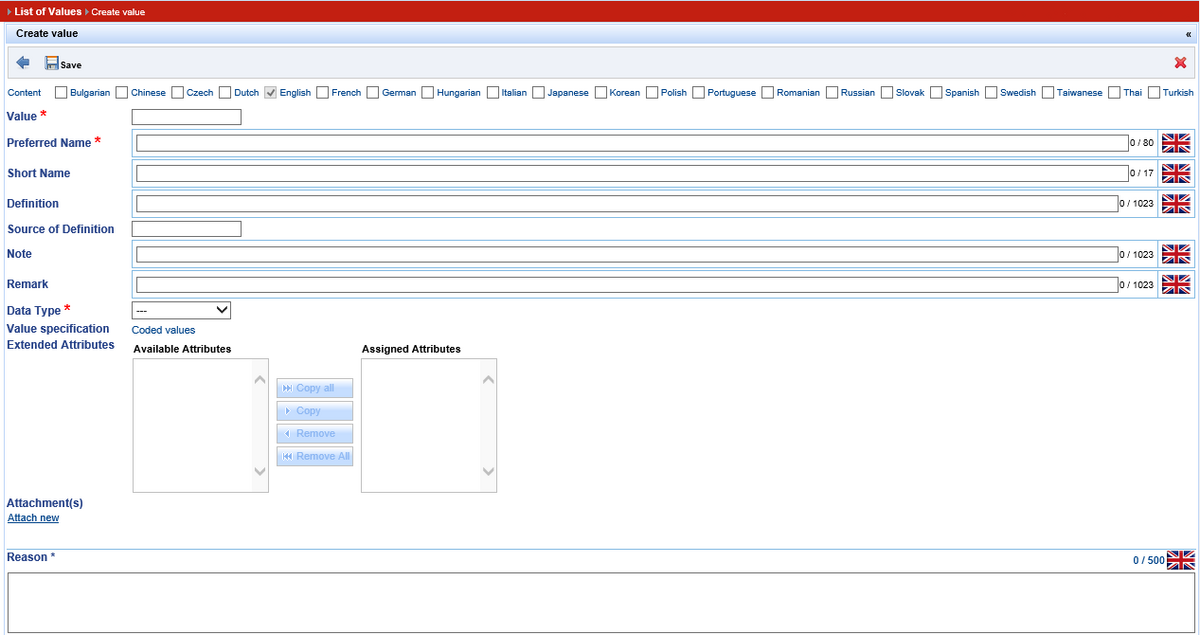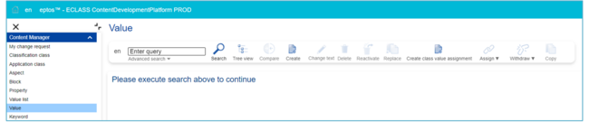 A new value is created. In order to create a change request (CR) for a new value (VA) proceed as follows: