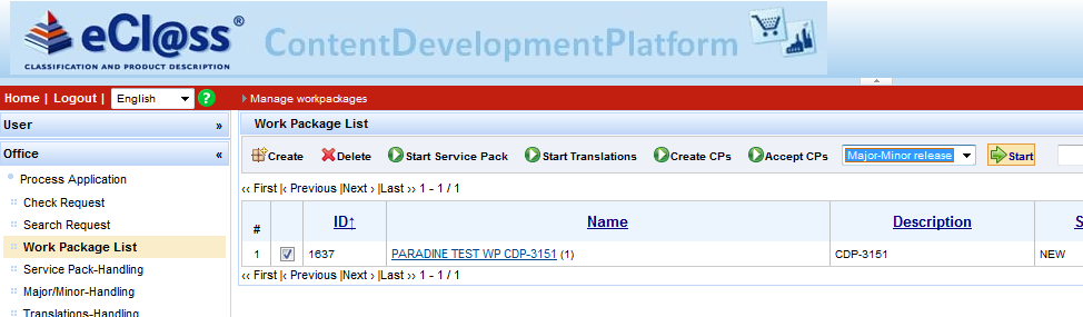 Minor-Major workflow can be started under menu entry Office – Work Package List.