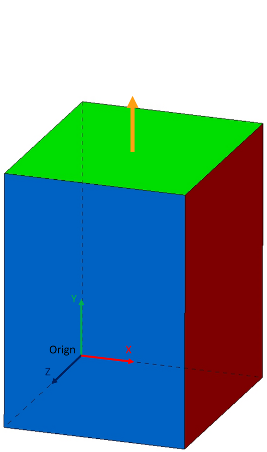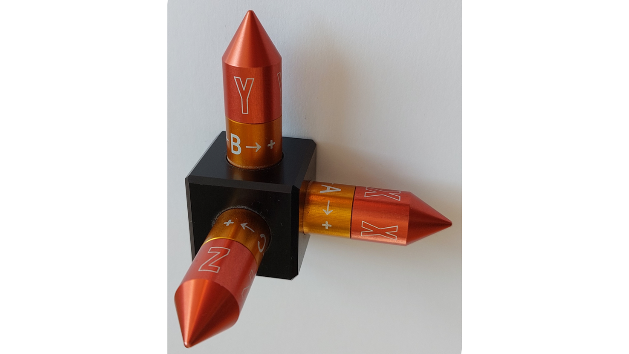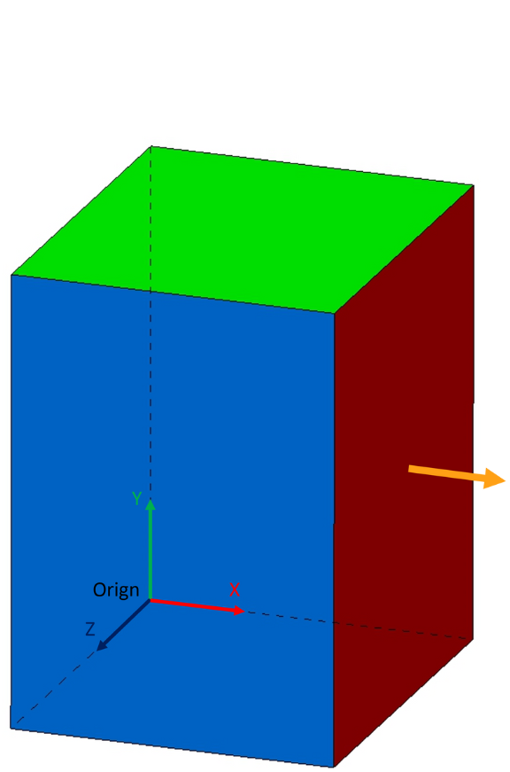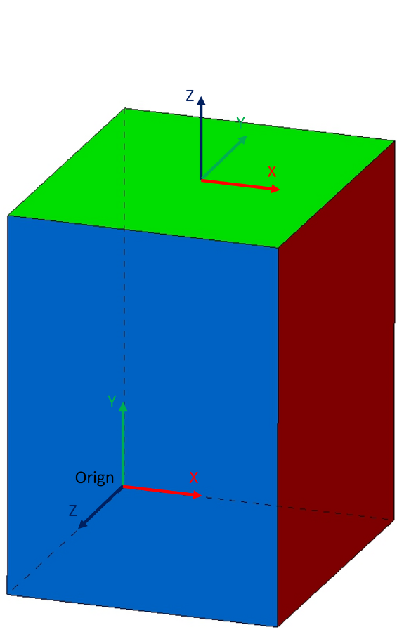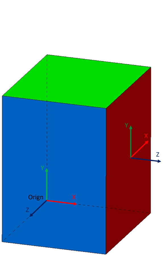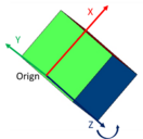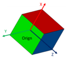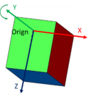 The picture shows the coordinate cube placed like ECLASS coordinate system with x- and y-axis placed on surface. In coordinate cube rotation A represents ɣ in Euler-matrix, B represents β and C represents α.