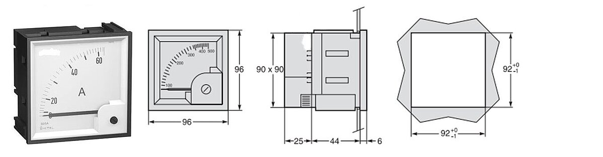 Figure 26: Ammeter illustration and 3 sides of the ammeter