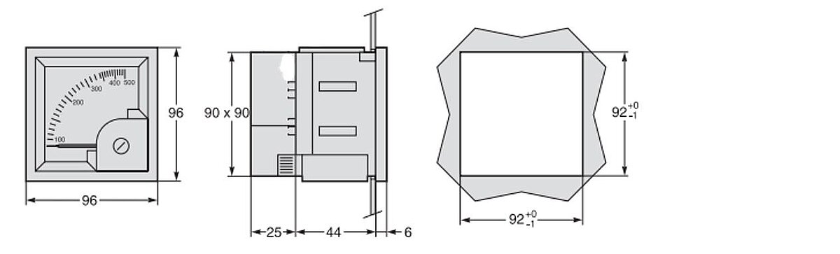 If mounting cut-outs in panels and or fronts (touch protection covers, doors) are required, information on the required measurements can be given here.