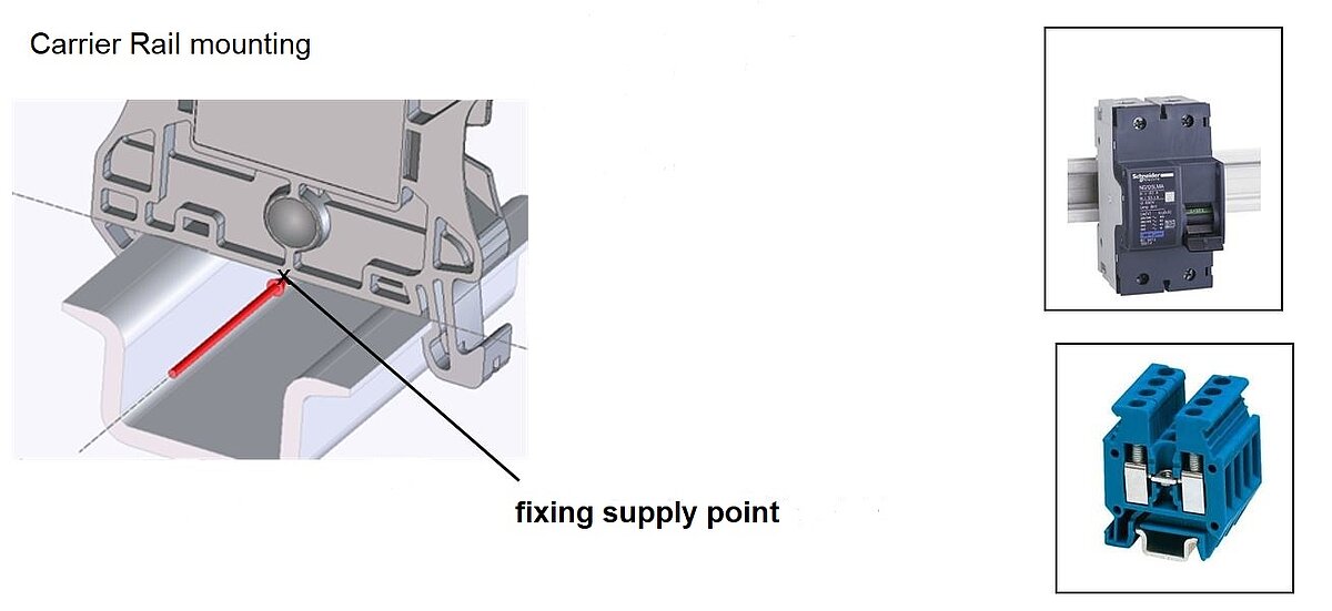 When fixing on carrier rail, usually no fixing point is required. The fixing reference is described by the fixing supply point.