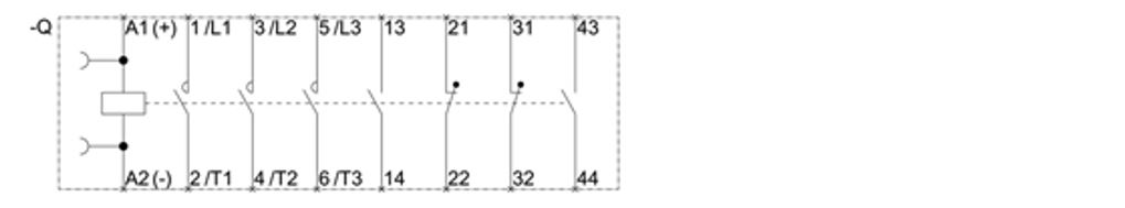 For the purposes of illustration, we will describe the relationship between symbol representation and function using the example of a power contactor (3RT2015-1BB44-3MA0). The equipment has the following schematic structure: