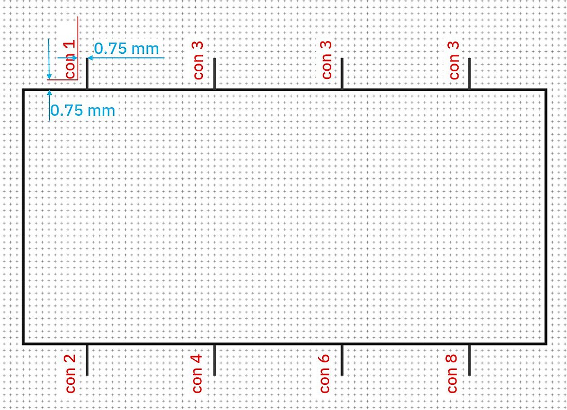 - 0.75 mm from the "box" (contour of the graphic symbol)
