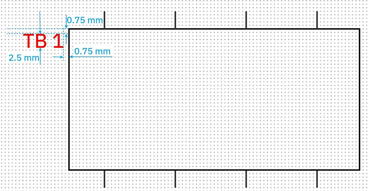 - The reference mark is positioned to the left of the box at a distance of 0.75 mm