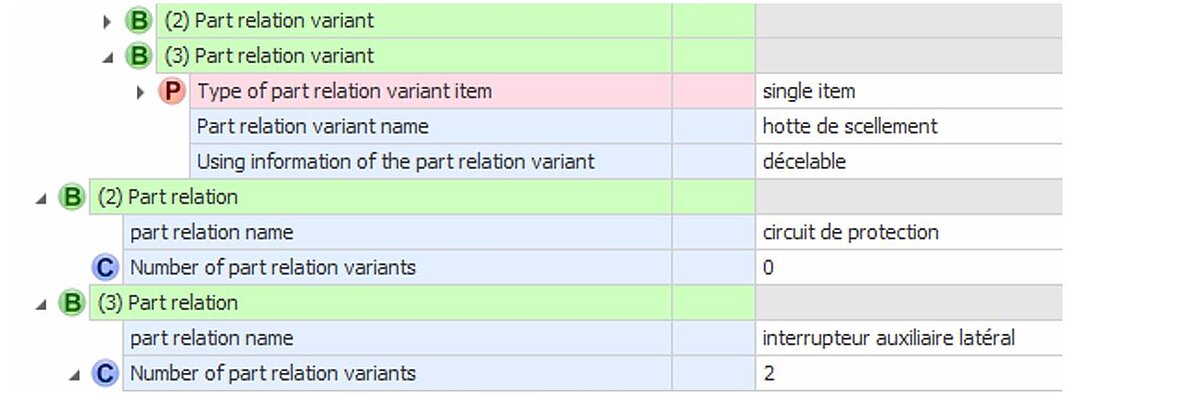 3 | C | Number of part relation variants | Specification of the number of possible variants in relation to the part relation name. | Selects the block to describe part relation variants according to number. |