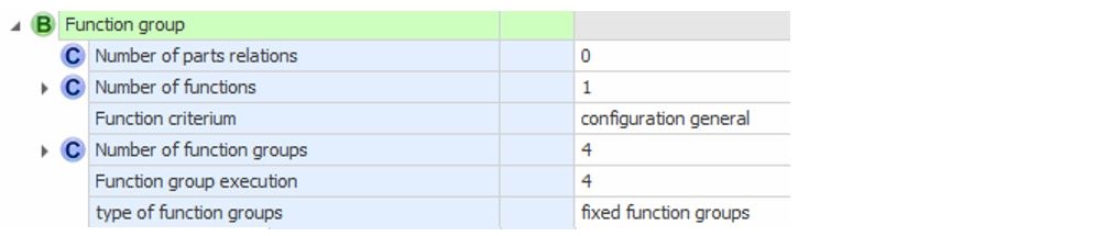 3 | W | fixed functional groups | With this value, all subordinate function groups are an integral part of the product. Direct assignment to function group no selection | The function groups are permanently assigned to the product |