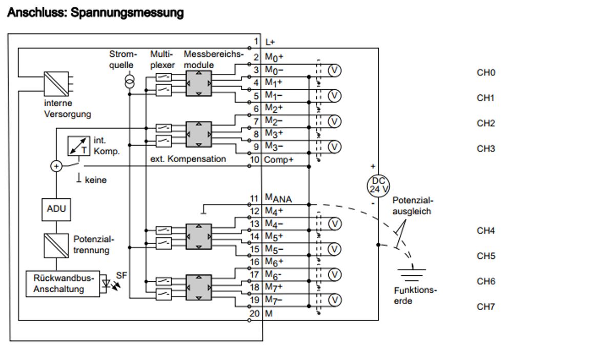 - Within a channel, all signals starting from the most positive potential become the most negative, supply voltage, voltage reference (ground), PE, shielding.